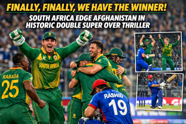 Match Tied, First Super Over Tied, South Africa Win Second Super Over by 4 Runs The ICC Men’s T20 World Cup 2026 produced its first classic as South Africa defeated Afghanistan in an unprecedented double Super Over finish at the Narendra Modi Stadium, Ahmedabad. After the regulation match ended in a tie at 187, and…